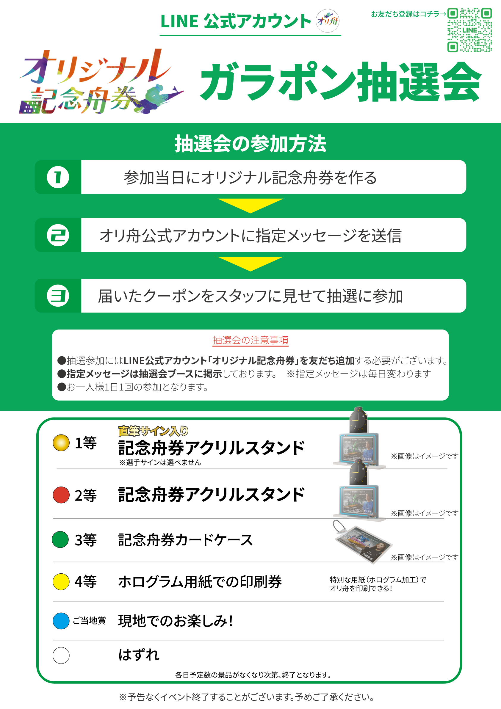 オリ舟イベント好評、明日の優勝戦は限定デザイン!